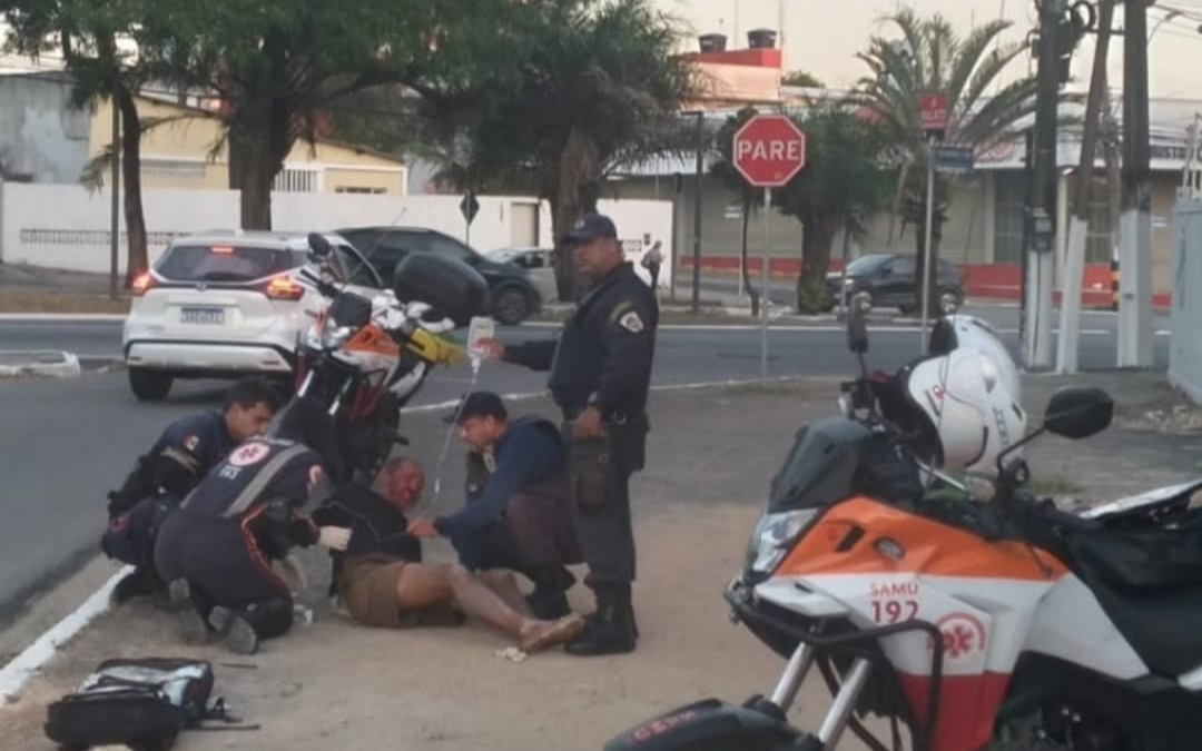 A guarnição se deparou com os socorristas atendendo um cidadão que havia sofrido um ataque epilético. A vítima apresentava ferimentos na cabeça, face e corpo, com sangramento visível em razão da queda. Diante da situação, os agentes do SIAV agiram rapidamente, oferecendo suporte operacional e garantindo a segurança da equipe médica para que o atendimento fosse realizado de forma ágil e segura.