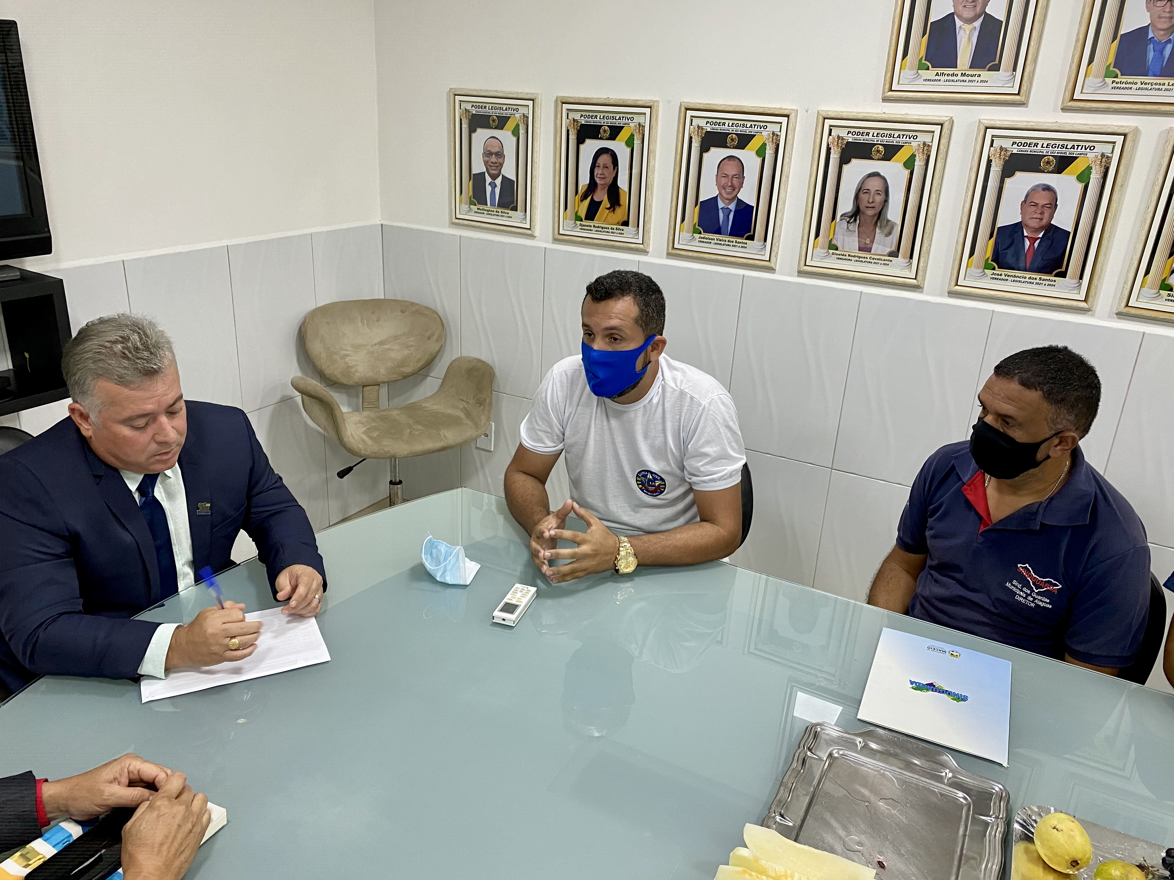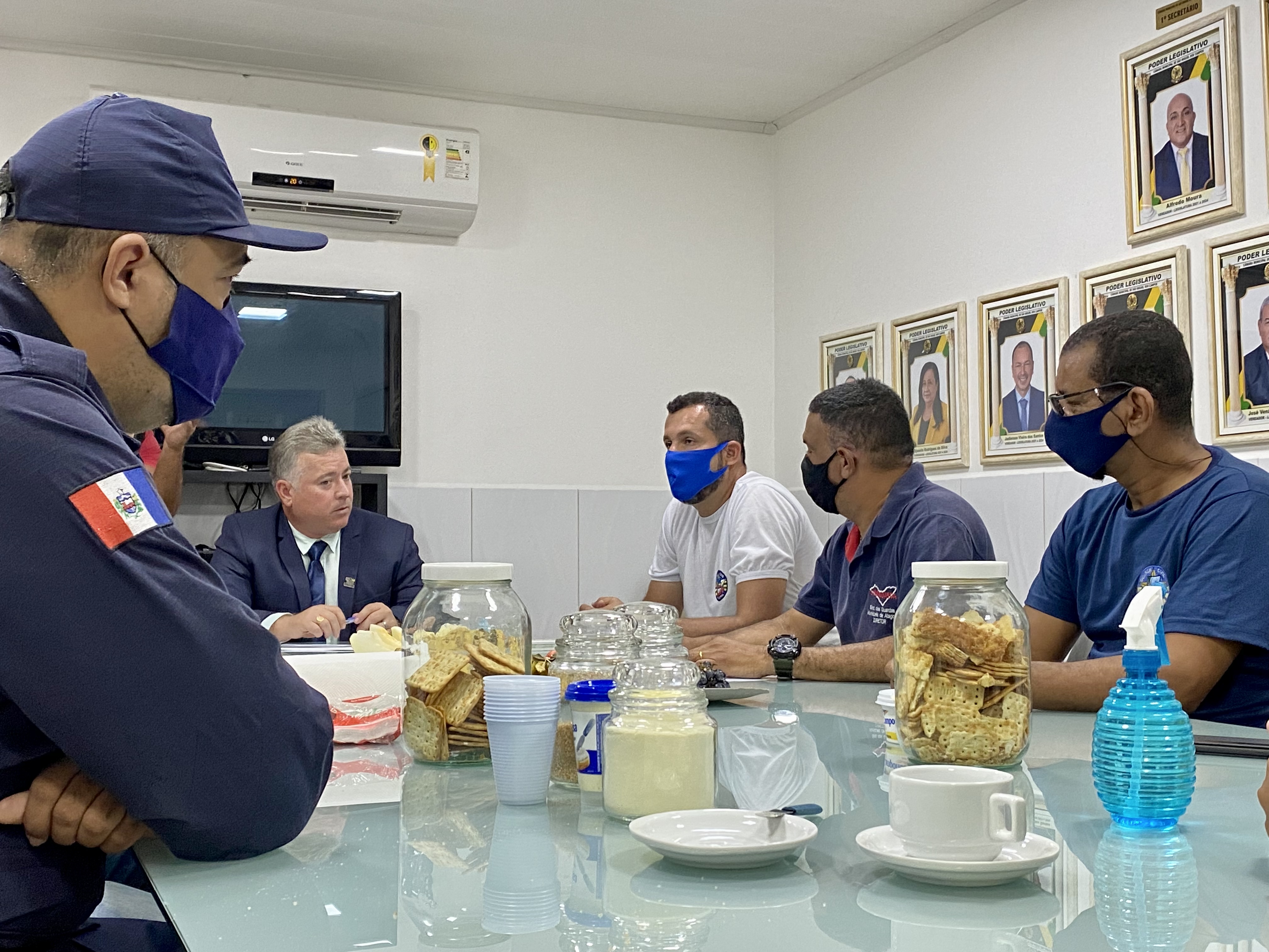 Ao chegar na Câmara, os guardas foram recebidos por uma comissão de vereadores – formada pelo presidente da Casa Legislativa, Diney Torres, pelos edis Jalmir Santos, Elson Vieira, Djanete Rodrigues, Wellington Silva (Tinho), Petrônio Verçosa, o advogado da Câmara José Domingos e o diretor de comunicação, Marcell Wagner.