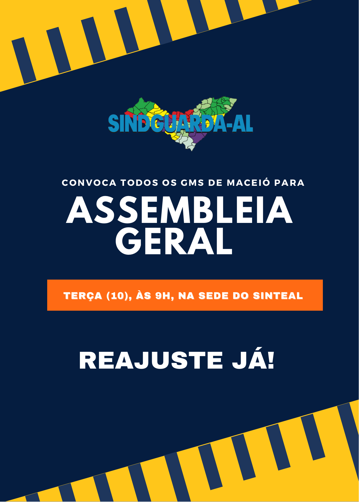 O Sindicato dos Guardas Civis Municipais de Alagoas (Sindguarda-AL) convoca todos os guardas para participar da Assembleia Geral.