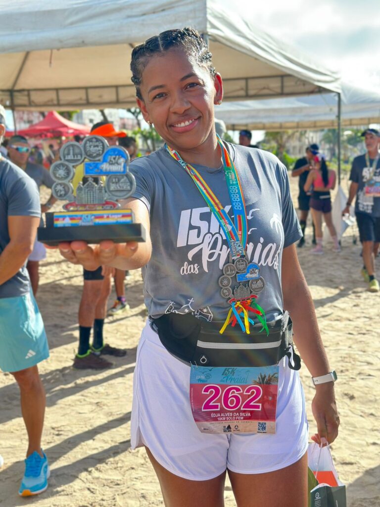 A subinspetora da Guarda Municipal de Delmiro Gouveia, Édja Alves da Silva, voltou a se destacar no esporte e garantiu 3º lugar na prova de 10 km da Corrida 15K das Praias – 2026, realizada no último 25 de janeiro, em Maceió. A largada aconteceu às 6h, na Praia da Avenida, reunindo atletas de diferentes localidades em um percurso inteiramente na areia.