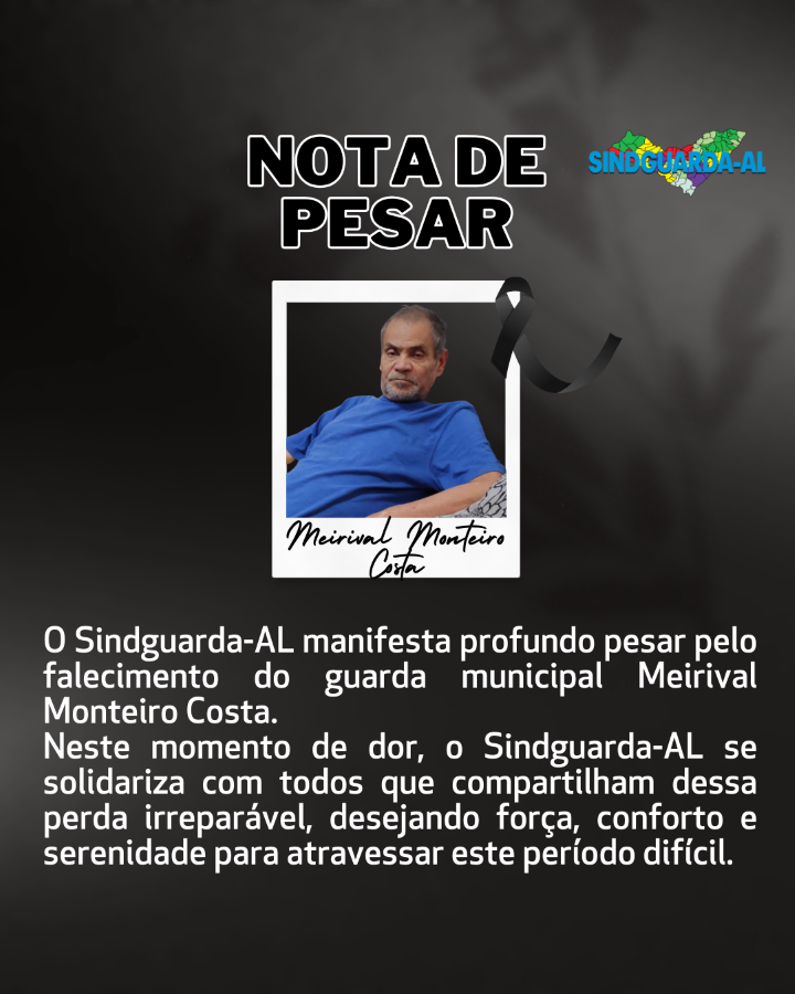 O Sindguarda-AL manifesta profundo pesar pelo falecimento do guarda municipal Meirival Monteiro Costa, ocorrido na manhã desta quarta-feira (25).